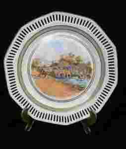 Polowanie - talerz z ażurowym brzegiem.