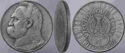 | Polska - 10 Złotych 1934 - Józef Piłsudski - ORZEŁ STRZELECKI na tarczy amazonek. |