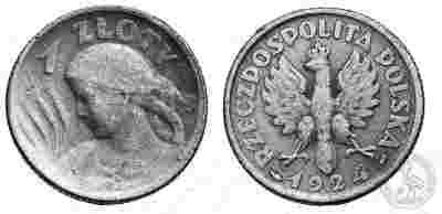 Polska - 1 Złoty 1924 - Dziewczyna z kłosami