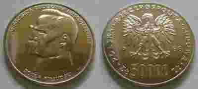 Polska 50 000zł Piłsudski 1988r srebro