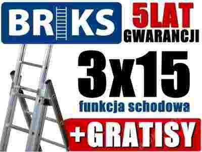 Polska Drabina Aluminiowa 3x15+HAK+ROLKI+F.SCHODY