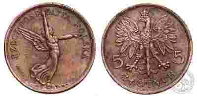 Polska - PRÓBA - 5 Zlotych 1927 - NIKE - Br - 1