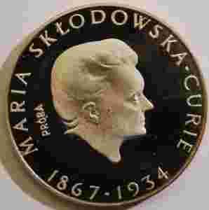 POLSKA PRL 100 ZŁ Ag PRÓBA MARIA SKŁODOWSKA-CURIE