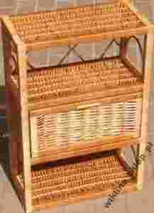 Przedmiotem aukcji jest półka wisząca wykonana z taśmy wiklinowej na drewnianym stelażu.