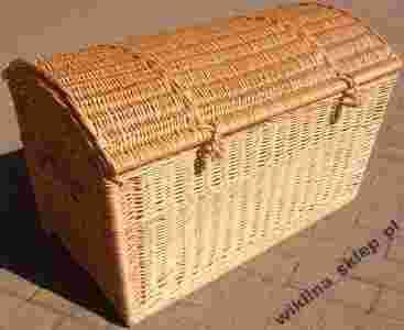 Przedmiotem aukcji jest kufer - skrzynia w kształcie Pirackiej skrzyni, wieko kosza mocowane na zawiasach, nie posiada obszycia.