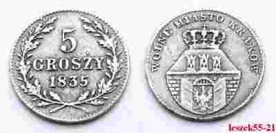 POLSKA WOLNE MIASTO KRAKÓW 5 GROSZY 1835