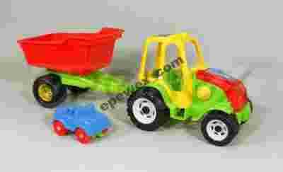Tylko trwałe i wysokiej jakości zabawki mogą być używane dłużej niż przez jeden sezon i więcej niż przez jedno dziecko. Przedmiotem aukcji, są traktorki z przyczepami wykonane przez Polską firmę oraz z trwałego polskiego plastiku. Odporne na uszkodzenia mechaniczne i dziecięce pomysły :) Prosta i nie narzucająca się forma zabawki nie odbierze tego co najpiękniejsze w dziecku - wyobraźni. Zabawki posiadają certyfikaty krajowe i spełniają ustawowe wymagania techniczne. Obecnie produkowane są w zgodzie ze standardami Certyfikatu Europejskiego - CE. Wymiary (220): Długość - 53 cm Szerokość - 15 cm Wysokość - 18 cm Traktory i przyczepy są w różnych zestawieniach kolorystycznych, wybieranych losowo (czerwone, żółte, zielone, niebieskie).