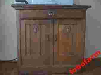 Przedmiotem aukcji jest bardzo stary mebel tzw. pomocnik do kredensu, nie jestem pewna dokładnego wieku, ale zwrócono mi uwagę, że jest to rzecz z okresu secesji, rzecz piękna, drewniana (lite drewno), masywna, szeroka i doskonale zachowana, patyna przydaje jej tylko uroku. Ma podrzeźbiane elementy. Ów wspaniały mebel, plecy ma częściowo wpasowane weń kilka/kilkanaście lat temu, gdy oryginalne uległy pęknięciu, ale w niczym to nie przeszkadza gdyz i tak mebel winien stać przy scianie. Komoda jest prosta, w formie i urzekająca kolorem mahoniu z nutką zaciemnień w miejsach zdobień. To one głównie stanowią element dekoracyjny przedmiotu, to one decydują o stylu całości.