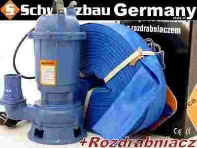 Przedmiotem aukcji jest nowoczesna, masywnie skonstruowana pompa wraz z wężęm do wody czystej i brudnej, renomowanej firmy schwarzbau. Urządzenie dysponuje dużą mocą. Waga około 17 kg. Wyposażona w turbinę rozdrabniającą- dwie, profilowane łopatki, zaostrzone po końcach. Pompa jest hermetyczna-całkowicie zatapialna