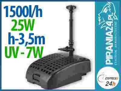Pompofiltr NPUV-1500 to kompletny zestaw pompy filtracyjnej wraz z lampa przeciwglonową UVC 7W (zamontowaną wewnątrz korpusu pompy). Połączenie to zapewnia pełen proces biologicznego i chemicznego oczyszczania oczka wodnego, co gwarantuje długotrwały efekt czystej wody. W zestawie znajduje się gąbka filtracyjna, złoże biologiczne - zeolit oraz dysza fontannowa trzystopniowa.