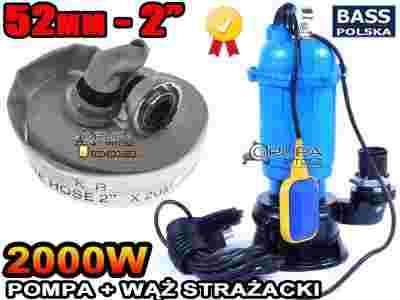 POMPA WODY Z ROZDRABNIACZEM 2000W + WĄŻ 52mm 20M
