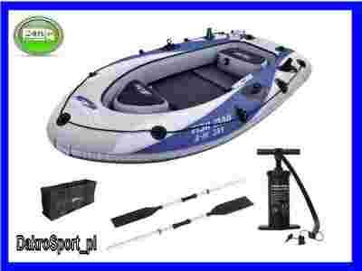 W zestawie dołączone zostały pompka i wiosła, które będą nieodłącznymi elementami każdej wyprawy.