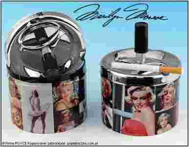 Popielniczka pięknie zdobiona obrazami Marylin Monroe wykonana w całości z metalu bardzo wygodna w użyciu oraz łatwa w utrzymaniu czystości. Jedno naciśnięcie powoduje że wszystkie nieczystości spadają do wewnątrz przez co przykre zapachy oraz dym nie wydostają się na zewnątrz dzięki czemu zawsze jest czysto. Popielniczka dodatkowo jest odporna na wiatr (nie wydmuchuje popiołu), ładnie się prezentuje, i jest pakowana w estetyczne kartonowe pudełko.