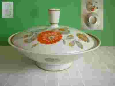 PORCELANOWA BOMBONIERA ECRU- KWIATKI