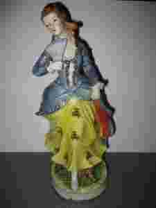 Porcelanowa duża figurka DAMA Z WACHLARZEM 29 cm.