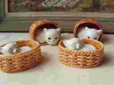 PORCELANOWE KOTY W KOSZYKACH 4 SZT