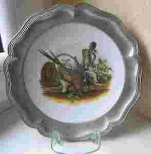 PORCELANOWY TALERZ W CYNOWEJ RAMIE BAŻANT