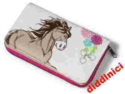 Portfel pluszowy nici koń szaro-beżowy 16x9,5cm