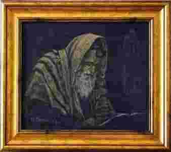 Portret starego Żyda w postarzanej ramie.