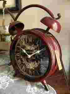 Postarzany Bordowy metalowy zegar budzik Retro