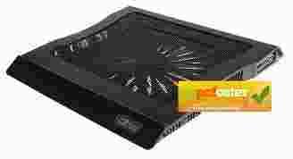 Podkładka chłodząca pod komputery przenośne o przekątnej ekranu do 15,6", duzy i cichy wentylator o średnicy 20cm, regulowana prędkośc obrotowa, przelotowy port USB