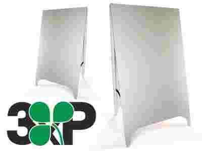 Konstrukcja potykacza powstaje w oparciu o stworzony w 100% przez nas projekt obróbki płyt kompozytowych. Stosowane przez nas płyty składają się z dwóch warstw lakierowanego na biało aluminium osadzonych na trzonie z tworzywa sztucznego dzięki czemu potykacz naszej konstrukcji opiera się wszelkim niekorzystnym czynnikom wynikającym z ekspozycji zewnętrznej, a co najważniejsze posiada stabilność oraz wagę czyniącą go odpornym na najsilniejsze podmuchy wiatru.