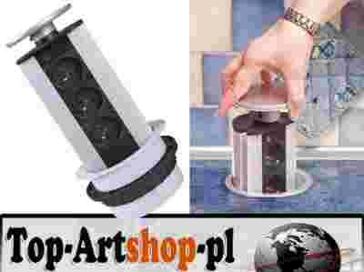 Wysuwana listwa zasilająca Power Port w kształcie walca z trzema gniazdkami sieciowymi
