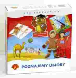 Poznajemy ubiory to atrakcyjna i emocjonująca gra, w której zwycięża ten, kto najszybciej skompletuje ubiór swojej postaci (pasujący do wybranej krainy). Jest to również doskonałą zabawa, w czasie której dzieci poznają ubiory różnych stron świata. Zawartość pudełka: - 4 plansze z postaciami, - 4 karty z ubraniami, - plansza ze wskazówką, - kostka, - 8 żetonów, - instrukcja. Gra dla 2-4 graczy w wieku od 5 lat.