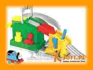 Poślij Tomka jedną z ramp - do przodu lub do tyłu. Poruszanie i zatrzymywanie lokomotywy pozwala dzieciom kontrolować zabawę. Specjalna dźwignia umożliwia podnoszenie i opuszczanie mostku - rampy !