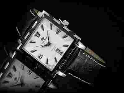 Koperta w kolorze srebrnym , tarcza biała wyposażona w datownik , cyfry czarne - dobrze czytelne, wskazówki ciemne . Pasek w kolorze czarnym , wzmacniany ozdobnymi przeszyciami na krawędziach, wykonany z skóry naturalnej . Szkło płaskie - odporne na zarysowania .