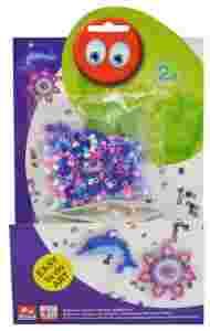 Zestaw do samodzielnego wykonania ozdobnych wprasowanek. Do wyboru masz 2 zestawy: z niebieskimi, granatowymi, różowymi, fioletowymi i białymi koralikami, z których zrobisz delfinka i kwiatek lub z czerwonymi, czarnymi, brązowymi i żółtymi koralikami, do wykonania pieska i samochodu.