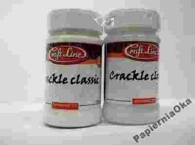 Przedmiotem aukcji jest Cracle Classic -dwuskładnikowy preparat do spękań o pojemności 100ml. (dwa pojemniczki po 100ml stanowią komplet). Jest to preparat postarzajacy do spękań który po wyschnięciu jest przeźroczysty i tworzy siatkę spękań.