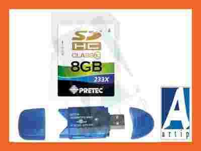 Pretec karta SDHC 8 GB 233x class 10 +czytnik SDHC