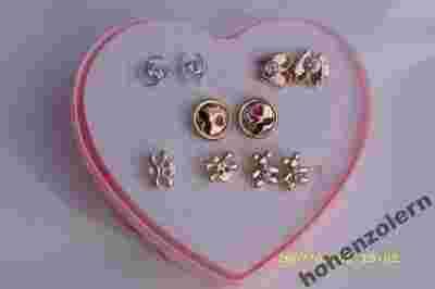 Zestaw 5 par złoconych i srebrzonych kolczyków z cyrkoniami.