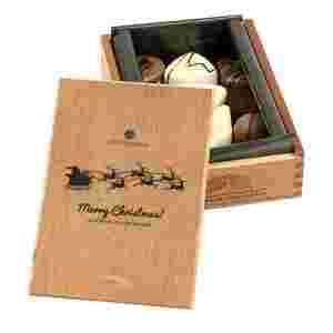 Święta to czas na obdarowywanie swoich bliskich niezwykłymi przentami, do których bez wątpienia zaliczyć można Merry Elegance. Ekskluzywna, drewniana skrzyneczka z afrykańskiego drewna skrywa w sobie 12 ręcznie wykonanych pralinek od najlepszych czekoladników. Smakowicie wyglądające pralinki przyciągają wzrok, a smakują jeszcze lepiej. Każda z pralinek posiada swój oryginalny smak zamknięty w mlecznej, deserowej lub białej czekoladzie, więc każdy znajdzie tu coś dla siebie. Ozdobny grawer Merry Christmas na zasuwce skrzyneczki idealnie odzwierciedla panujący klimat Świąt Bożego Narodzenia.