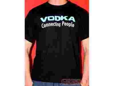 Napis na koszulce: VODKA CONNECTING PEOPLE