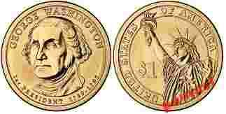 Przedmiotem aukcji jest moneta kolekcjonerska o nominale 1 dolar (jednodolarówka) Prezydenci USA - George Washington 2007