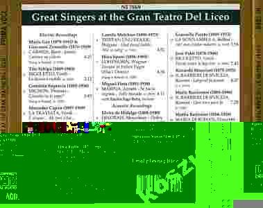 | Featuring Maria Gay, Giovanni Zenatello, Tito Schipa, Conchita Supervia, Mercedes Capsir, Lionello Cecil, Apollo Granforte, Guglielmo Masini, Lauritz Melchior, Hina Spani, Miguel Fleta, Emilio Sagi-Baba, Elvira de Hidalgo, Hipólito Lázaro, Titta Ruffo, Graziella Pareto, José Palet, Riccardo Stracciari, Maria Barrientos, Mattia Battistini and Francisco Viñas. |