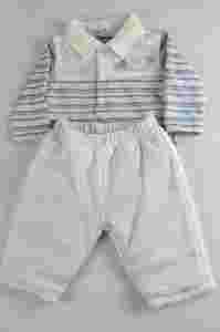 Bardzo ciepły komplecik dla Twojego skarba. Składa się z bluzeczki z kołnierzykiem i długimi rękawami oraz cieplutkich, dwuwarstwowych spodenek.