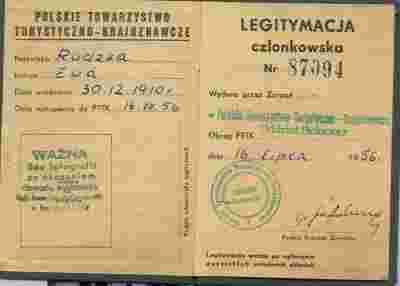 PRL LEGITYMACJA PTTK 1956