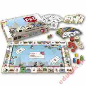 Zawartość pudełka: karty ZADANIE, karty PRZEDMIOT, plansza, 4 pionki, 2 kostki, kartonowy model samochodu, żetony, banknoty, instrukcja.