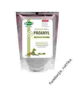 Proamyl for Dog to dodatek uzupełniający do karmy dla psów, będący źródłem wysokiej jakości białka pokarmowego, enzymów trawiennych oraz inuliny. Dzięki swemu składowi jest to doskonały produkt przeznaczony do odżywienia zwierząt wychudzonych i wyniszczonych, ponieważ zawiera nie tylko hydrolizowane białko pokarmowe, ale także inne niezbędne dla wyniszczonych psów składniki. Psy mają stosunkowo dobrze rozwiniętą mikroflorę w jelicie grubym, dzięki czemu bardzo korzystne efekty przynosi u nich stosowanie włókna pokarmowego, szczególnie włókna rozpuszczalnego, jakim są oligosacharydy. Dlatego dodatek inuliny, będącej źródłem oligosacharydów, pobudza wzrost korzystnie działającej mikroflory przewodu pokarmowego, która dzięki temu stabilizuje pracę jelita