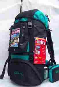 liczne uchwyty (paski troczne) do przymocowania np. namiotu, śpiwora, karimaty itp. z boku kieszenie siatkowe na np. napoje i sznurogumy jako dodatkowe kieszenie lub paski kompensacyjne / pomniejszajace plecak /, z jednej strony zaczepy na przypiecie np. czekanu, kijek itp , z drugiej paski do zawieszenia np. karimaty .....