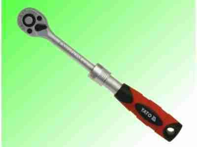 Grzechotka teleskopowa YATO posiada mechanizm przedłużania ramienia roboczego, co pozwala na zwiększenie siły i momentu odkręcającego. Mechanizm przedłużki posiada zapadkowy zamek blokujący, który współpracuje z bieżnią i otworami ustalającymi na ramieniu grzechotki.