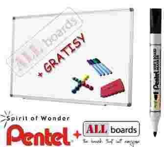 Dzięki współpracy   z    do pakietu gratisów otrzymacie Państwo marker Pentel MW85 koloru czarnego, którego linia pisania jest kilkakrotnie dłuższa niż w innych standardowych markerach do tablic suchościeralnych. Okrągła końcówka gładko i lekko zapisuje białą przestrzeń linią o grubości 1,9 mm.