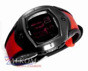 Model RN10B04 wyposażony jest w ciekłokrystaliczny wyświetlacz typuBLACK DISPLAY z czerwonymi wskazaniami nawiązującymi kolorystycznie do paska Koperta zegarka od frontu wykonana jest z czarnej stali szczotkowanej , pasek to dwukolorowa guma poliwęglanowa- odporna na zmienne warunki atmosferyczne, denko stalowe przytwierdzone czterema wkrętami. Wodoszczelność 5 ATM. Można pływać i zanurzać.