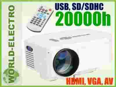 Uniwersalny projektor (rzutnik) multimedialny. Idealny do wyświetlania filmów w sypialni, w pokoju dziecięcym itp. - obraz można z łatwością rzucać na ścianę lub inną płaską powierzchnię.