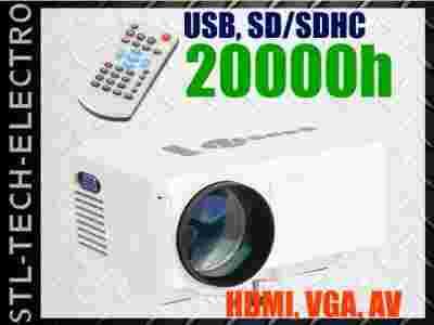 Uniwersalny projektor (rzutnik) multimedialny. Idealny do wyświetlania filmów w sypialni, w pokoju dziecięcym itp. - obraz można z łatwością rzucać na ścianę lub inną płaską powierzchnię.