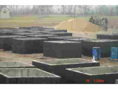 wykonany jest z betonu własnej produkcji klasy B-25, wibrowany z dodatkiem płynów wodno-uszczelniających, zbrojony stalą żebrowaną oraz zabezpieczony od zewnątrz masą asfaltowo-kauczukową (izolbet), co pozwala nam uzyskać wysoką jakość betonu, szczelność i wytrzymałość. Zbiorniki nasze objęte są