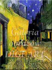 "W tych dniach pochłaniała mnie praca nad nowym obrazem przedstawiającym nocną kawiarnię na zewnątrz. Na tarasie widać małe sylwetki ludzi coś popijających. Ogromna, żółta latarnia oświetla taras, fasadę, chodnik a nawet rzuca światło na bruk ulicy, który nabiera przez to różowo-fioletowego połysku. Ciemnoniebieskie lub fioletowe szczyty domów są niczym niknąca w oddali droga pod błękitnym niebem usianym gwiazdami, przed nimi zielone drzewo. Masz tu nocne malowidło bez czerni, tylko z pięknym błękitem, fioletem i zielenią a w tym otoczeniu oświetlona, siarkowo-żółta i cytrynowo-zielona przestrzeń. Bawi mnie niezmiernie malowanie nocy prosto z marszu. Normalnie obraz szkicuje się i maluje w świetle dnia. Ale ja lubię malować rzecz od razu. To prawda, że w ciemności możesz wziąć błękit za zieleń, blady fiolet za różowy fiolet, kiedy jest trudno odróżnić odcień. Ale to jest jedyny sposób, żeby uwolnić się od naszej konwencjonalnej nocy z jej słabym, bladym, białawym światłem, kiedy nawet zwykła świeczka daje takie bogactwo żółtych i pomarańczowych odcieni ."